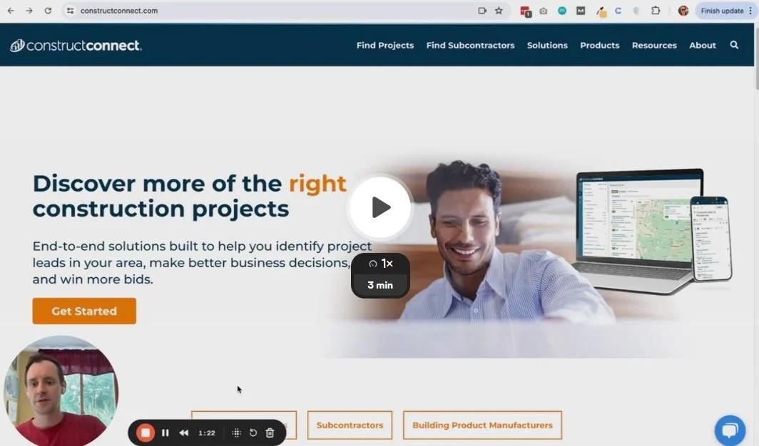 ConstructConnect demonstrates both the good and the bad of a conversion-focused homepage. On their own, individual elements make sense. When combined, it can start to feel overwhelming and cluttered.