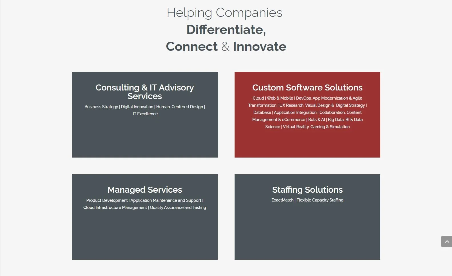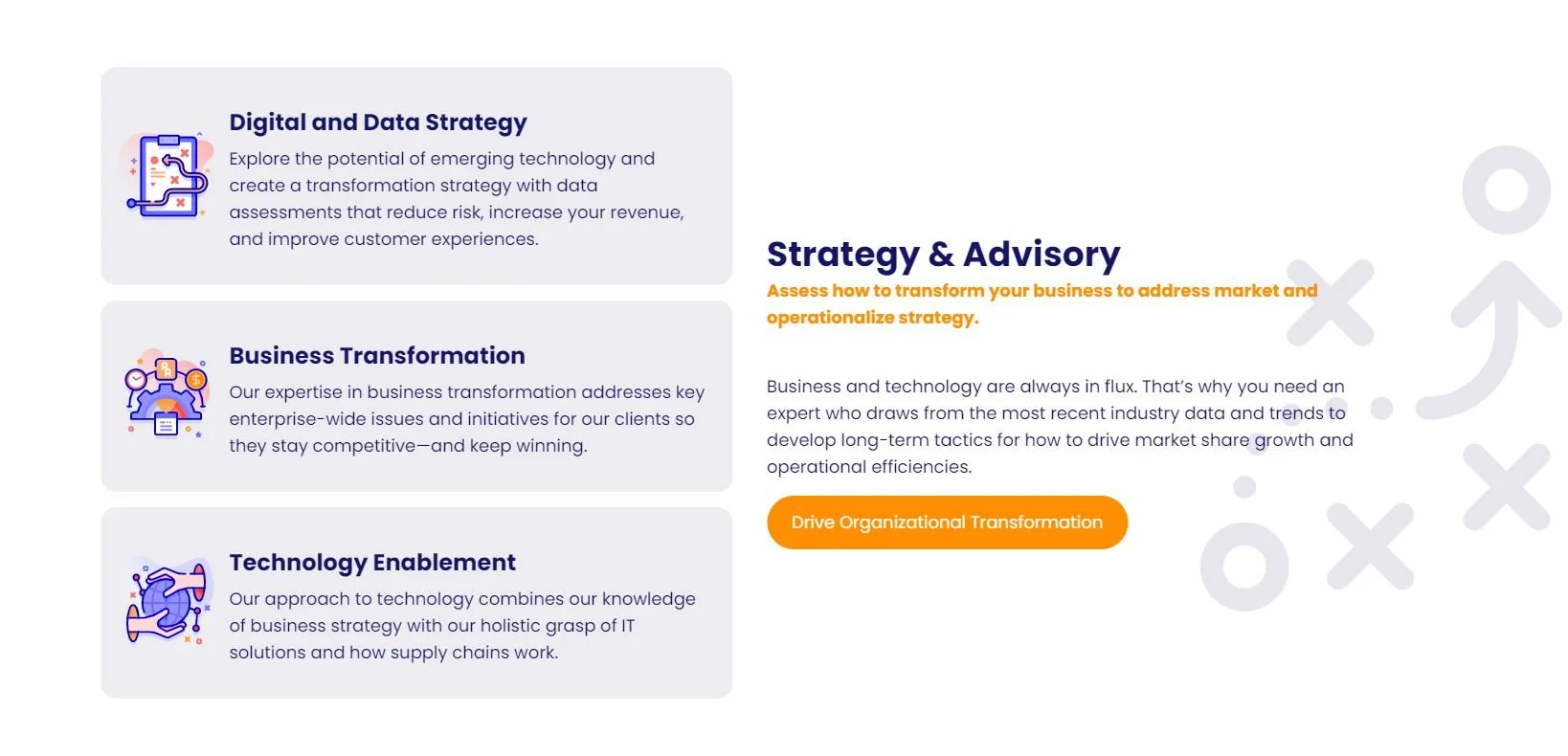 ✔️ Specific messaging and descriptions to clearly articulate to website users what will be delivered within each service area.