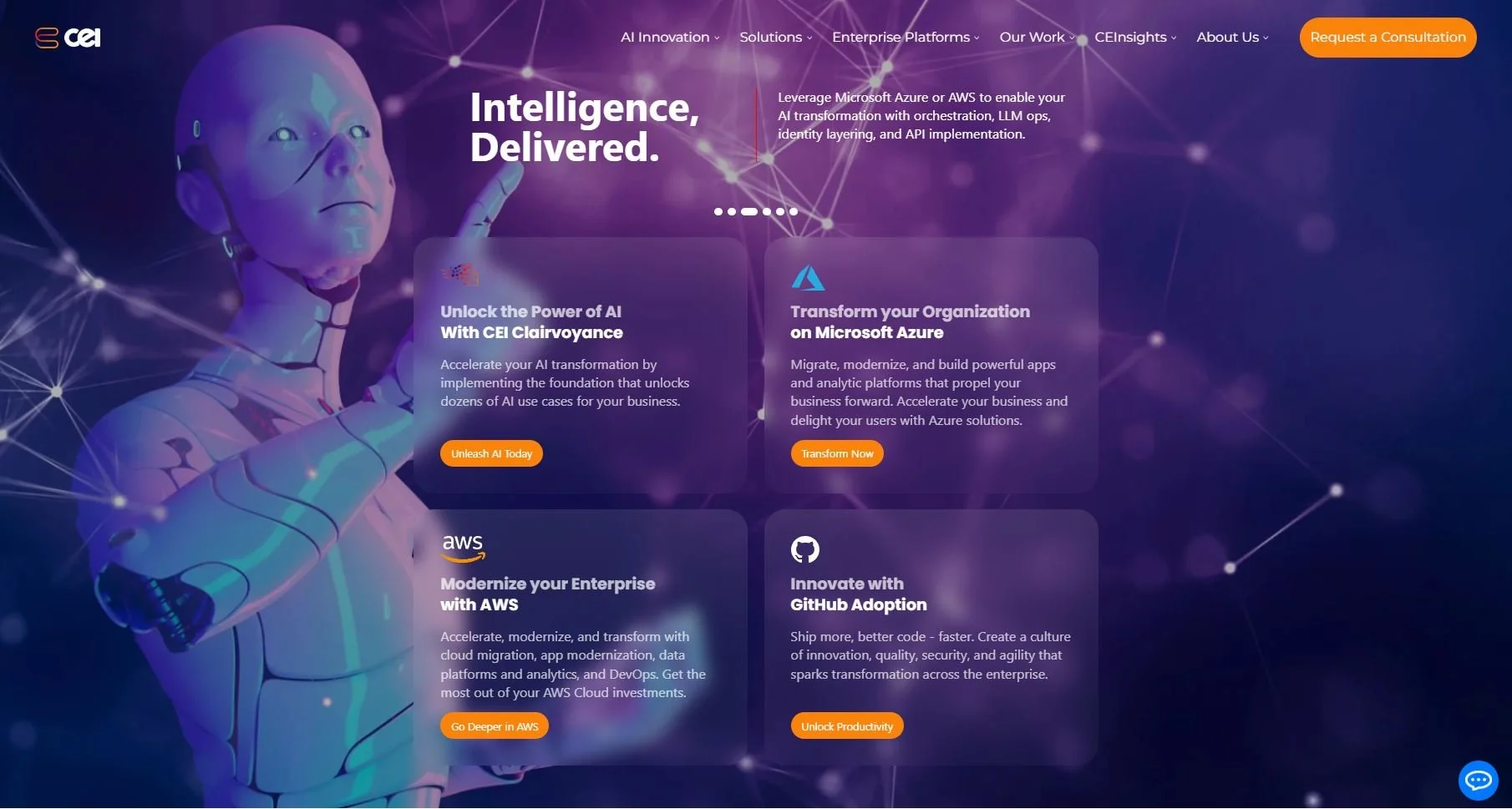 ✔️ Clear CTAs to drive users deeper into the site to discover more about services and capabilities.